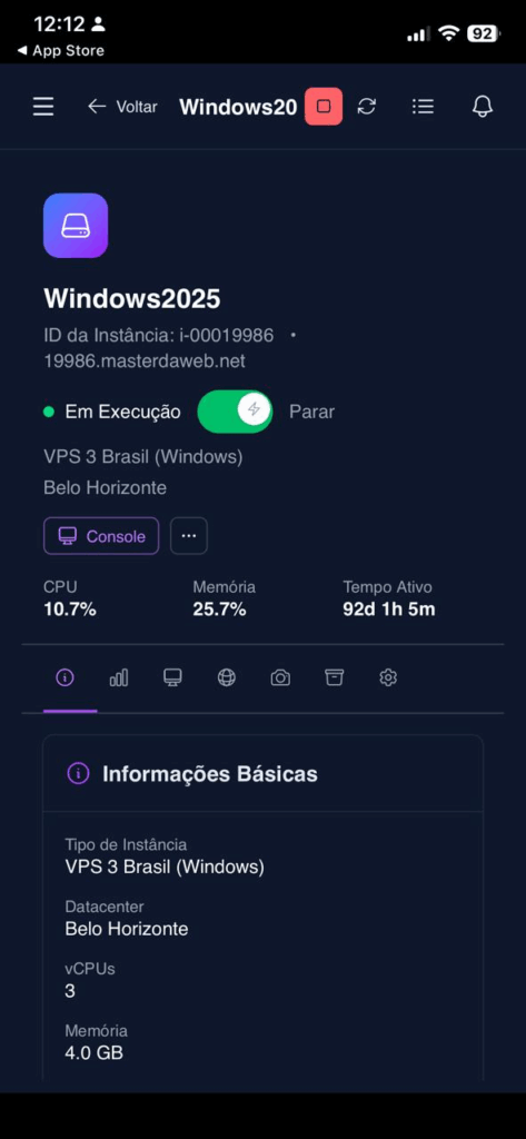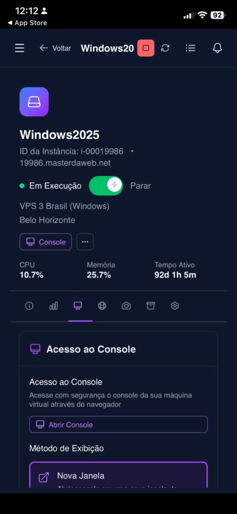 Com a MasterdaWeb Mobile, o gerenciamento e o acesso à sua Máquina Virtual tornam-se muito mais práticos, permitindo que você acompanhe e administre seus serviços de qualquer lugar, com segurança e estabilidade, diretamente do seu smartphone.