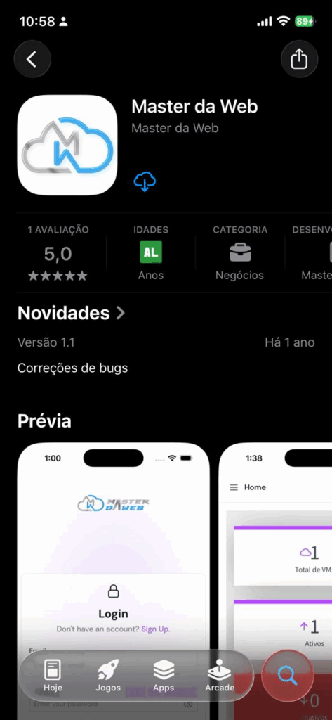 1. Instale o aplicativo Master da Web na loja do seu dispositivo (App Store ou Google Play).