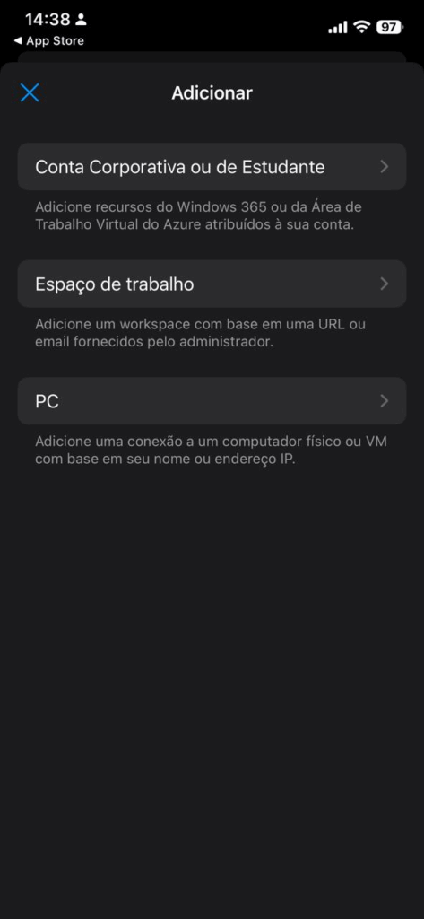 3. Toque no ícone “+” e selecione a opção “PC”.
